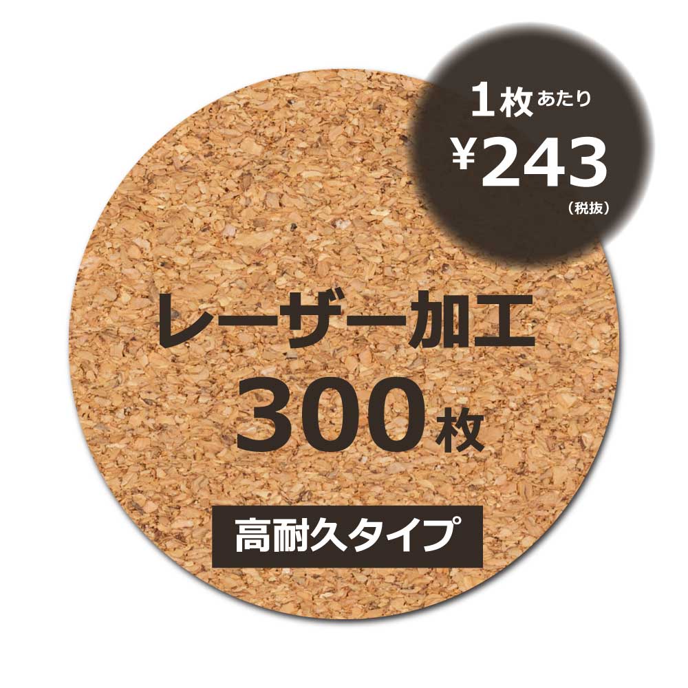 【レーザー加工 300枚】定型丸型コースター:高耐久再生コルクシート2mm厚