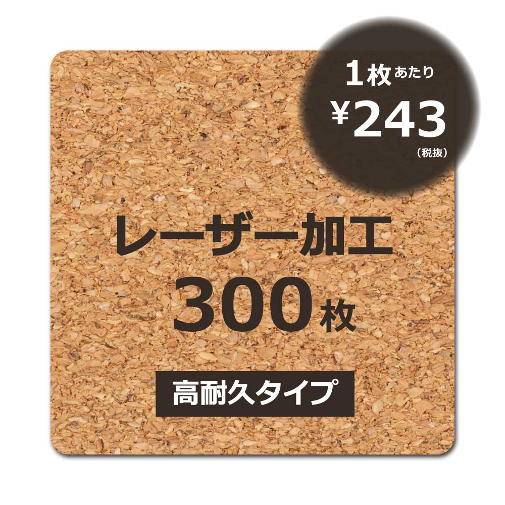 【レーザー加工 300枚】定型四角コースター:高耐久再生コルクシート2mm厚