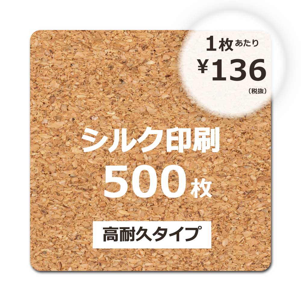 【シルク印刷 1C 500枚】定型四角コースター:高耐久再生コルクシート2mm厚