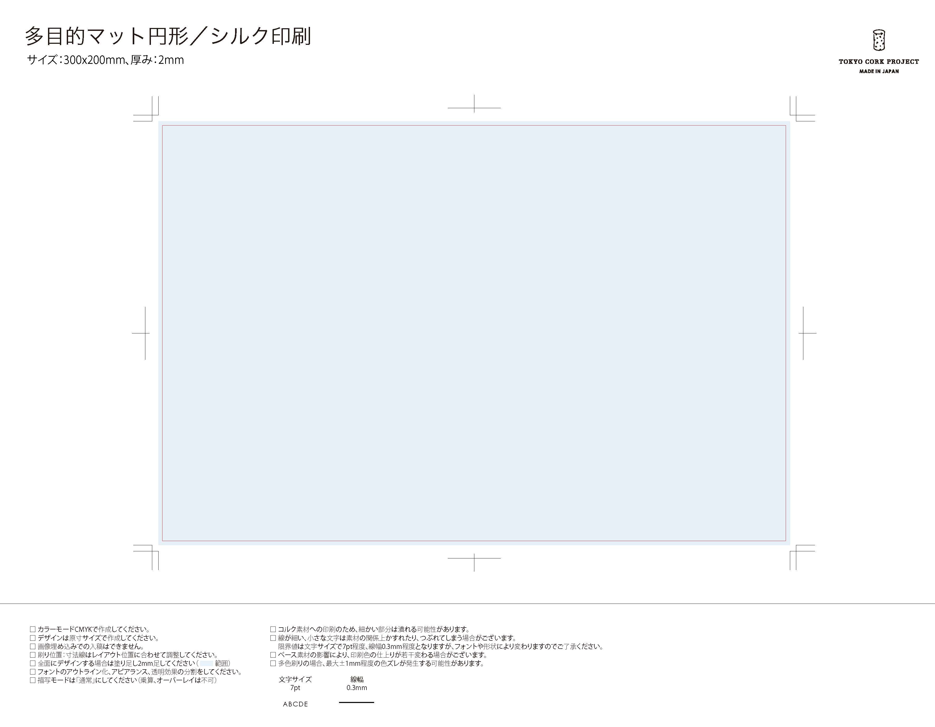 【シルク印刷 1C 250枚】長方形:多目的マット (高耐久再生コルクシート2mm厚)