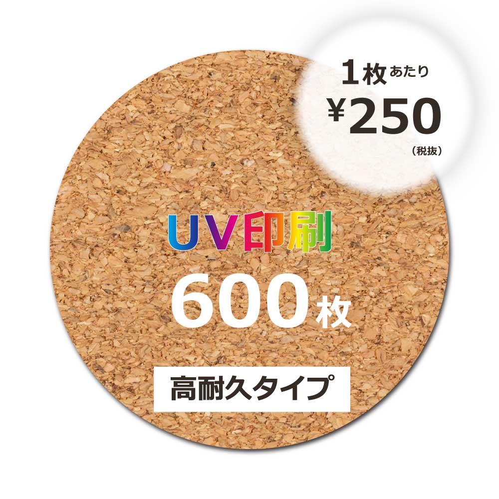 【UV印刷 600枚】定型丸型コースター:高耐久再生コルクシート2mm厚